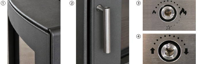 前面扉の開閉やコントロール部の調整には、専用の着脱式ステンレスハンドルを使用。