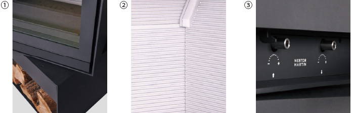 燃焼室のバックおよびサイドパネルには、ホワイト色の鋳物を採用。明るい背景が炎の色を鮮やかに引き立て、まるでアートフレームのような美しさを演出します。